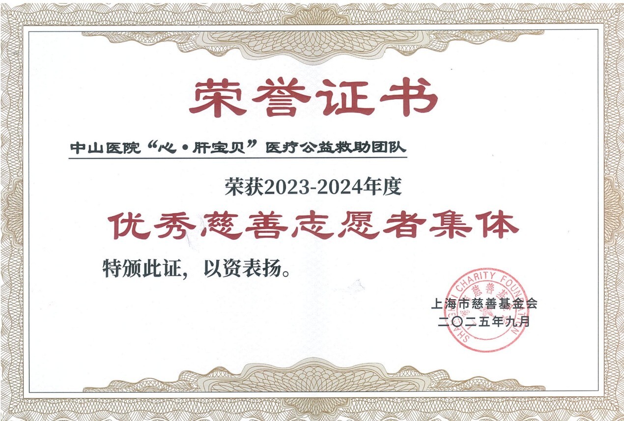 在成立18周年之际,基金下设的“心·肝宝贝”医疗公益救助项目再添殊荣,获得由上海市慈善基金会评审的“2023~2024年度上海市优秀慈善志愿者集体”奖。