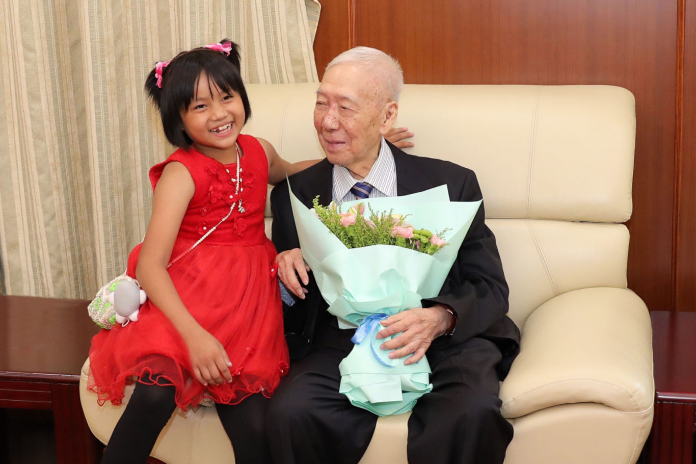 ▲陈灏珠院士与第一例治愈的先心病患儿杨康琳丹