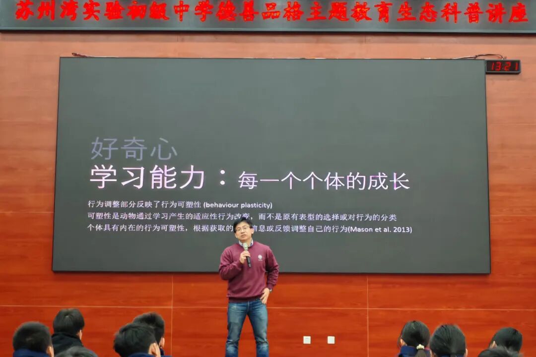 在苏州湾实验初级中学,王放以《野生动物的世界里藏着变化中的自然中国》为主题,用精彩的影像与案例展现了生物多样性研究与保护的紧迫与魅力;徐琛则带领同学们《闻香识药材 巧手做香囊》,在动手实践中领略中医药文化的博大精深。学者们的公益讲座与互动体验,激发了莘莘学子浓厚的科学兴趣,得到了师生们的高度评价。