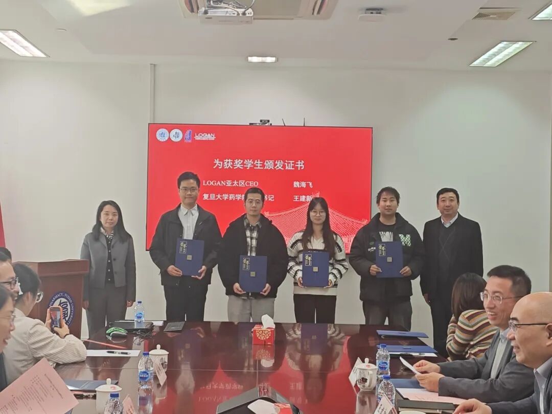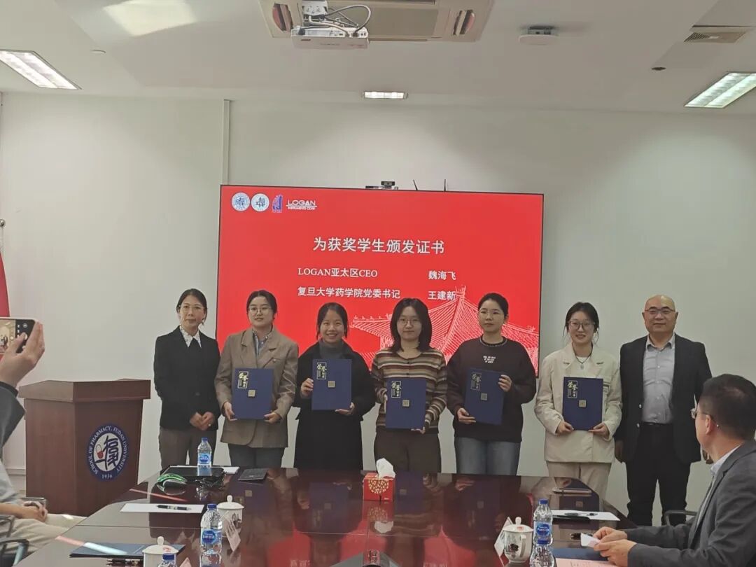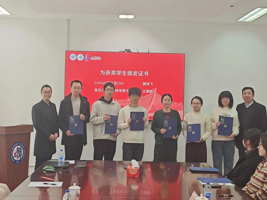 12月18日下午,复旦大学药学院LOGAN奖学金颁奖仪式在张江校区科研楼举行。药学院党委书记王建新、副院长戚建平、党委副书记王盛,LOGAN亚太区CEO魏海飞、亚太区VP刘杰昂、化妆品事业部负责人文洁,以及LOGAN奖学金获奖学生参加活动。仪式由戚建平主持。