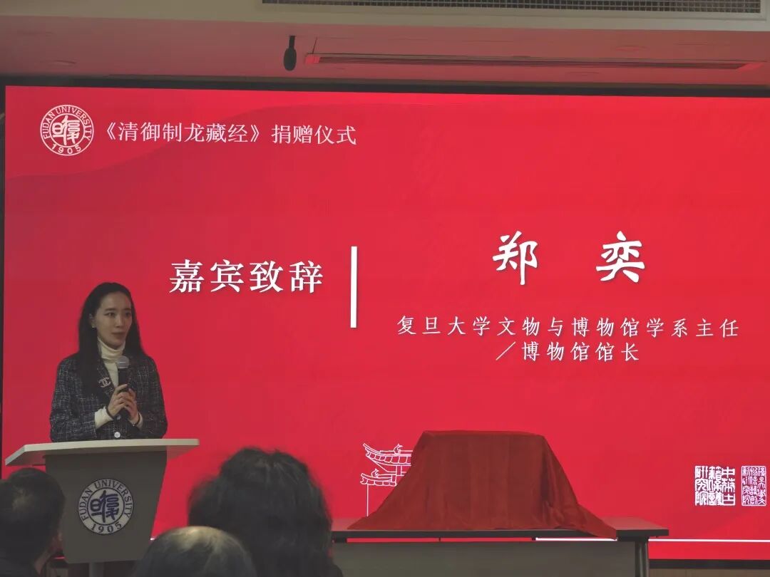 郑奕主任在致辞中表示,这部《乾隆大藏经》不仅是重要的佛教文献,也是珍贵的纸质文物,期待未来能在博物馆展出,供师生观摩研究。她特别指出,该藏经以明代《永乐北藏》为底本重新刊刻,收录典籍七千余卷,在文献完整性、工艺精湛性和文化象征性方面都具有突出价值。