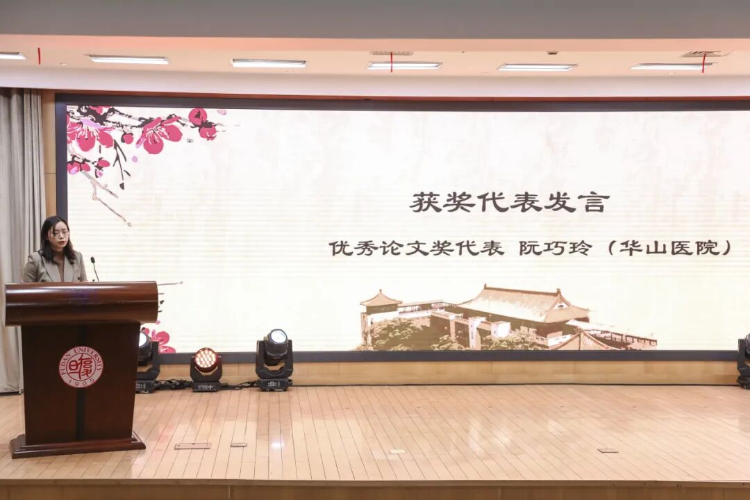 优秀论文奖获奖团队代表、华山医院感染科副主任医师阮巧玲,回顾了从十年前获奖的学生到如今指导学生获奖的传承,并以天疱疮合并感染的研究为例,阐述了融合感染科、皮肤科、营养科等多学科视角解决临床复杂问题的“一体化健康”实践。