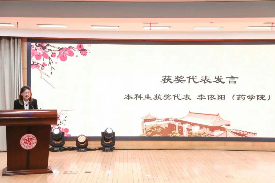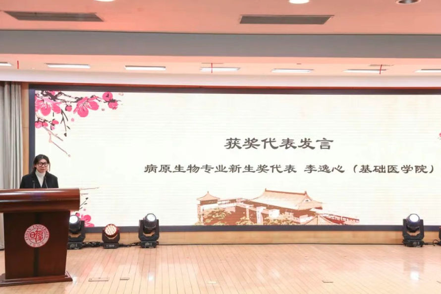 “这份荣誉让我更加坚信,药学创新往往诞生于学科交叉的边界,源于从病床到实验室、再到社会的完整链条。”本科生获奖代表、药学院李依阳在发言中分享了从临床志愿服务中萌发科研灵感,研发肾衰竭靶向治疗体系并深入乡村开展用药科普的实践经历。研究生获奖代表、眼耳鼻喉科医院陈中幸以“感激、感悟、感召”为脉络,讲述了自己从临床转向科研,聚焦眼科递药难题并致力成果转化的探索之路。病原生物专业新生获奖代表李逸心从基础医学研究生的角度,分享了她受闻玉梅院士感召、选择投身病原微生物研究的初心和决心。
