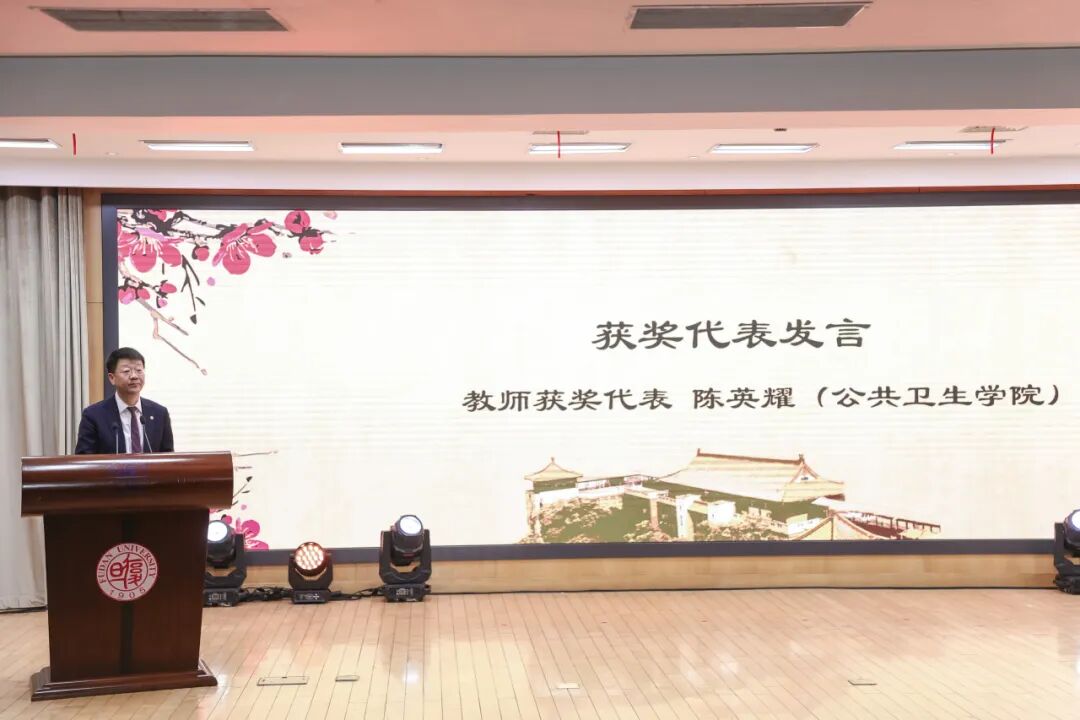 教师获奖代表、公共卫生学院教授陈英耀,则从卫生政策与全球健康的宏观维度,介绍了其团队在构建国际合作网络、推动循证决策与培养全球健康人才方面的系统实践,诠释了“一体化健康”作为思维方法与行动框架的深远意义。