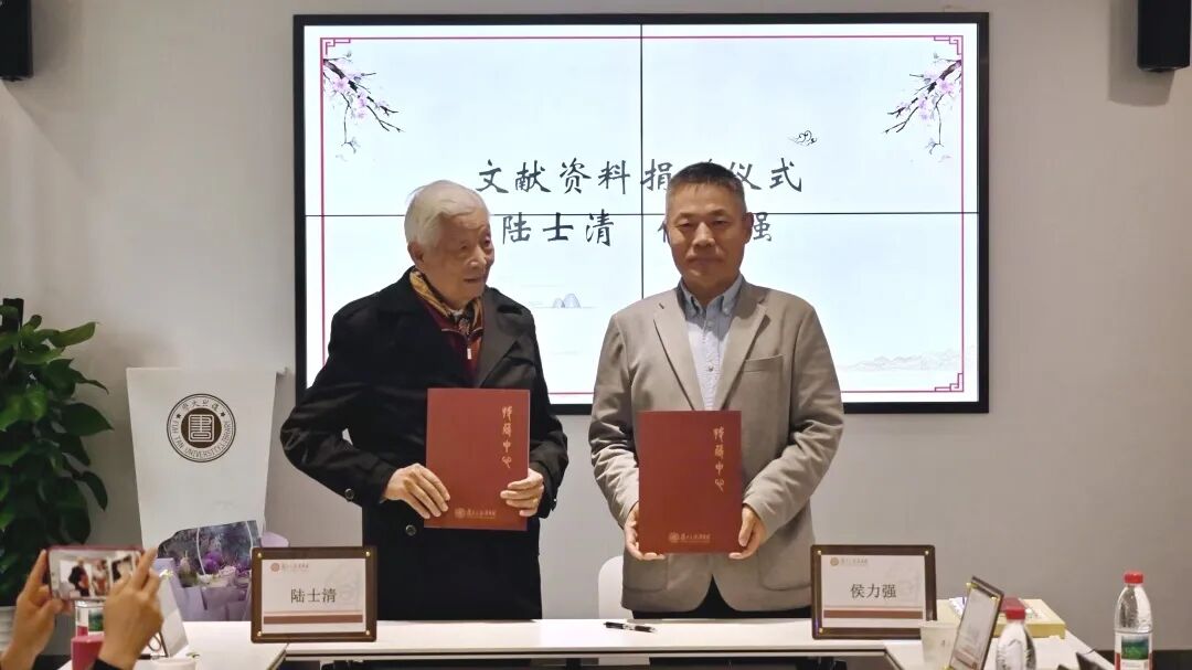 侯力强书记代表复旦大学图书馆向陆士清教授的慷慨捐助表示诚挚感谢,承诺图书馆将以最大的敬意与责任感,珍藏这批文献、整理这份记忆、守护这段文脉,使之在教学与研究中持续焕发生命。