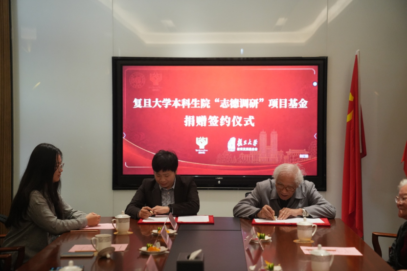 春风送暖,万物竞发。4月26日,《复旦大学书院教育实践基地合作共建框架协议》签约仪式、复旦大学本科生院“志德调研”项目基金捐赠仪式在上海颐和苑养老中心举行。上海颐和苑养理事长周保云,党总支书记、副总经理周菊贤,捐赠人王洺、徐晋庆夫妇,复旦大学志德书院院长高国希,对外联络与发展处副处长、复旦大学教育发展基金会副秘书长林晶晶,教务处副处长徐珂,志德书院院长助理钱榕,以及志德书院“忆述光华”团队等出席仪式。仪式由周菊贤主持。