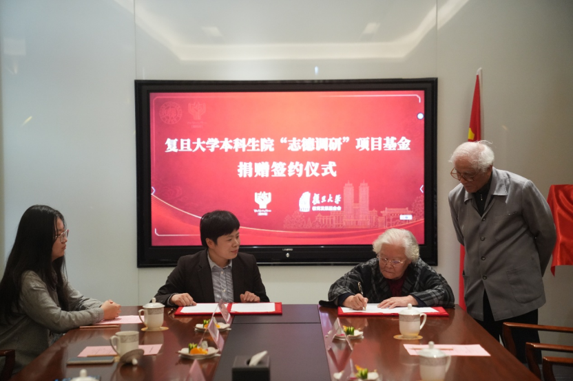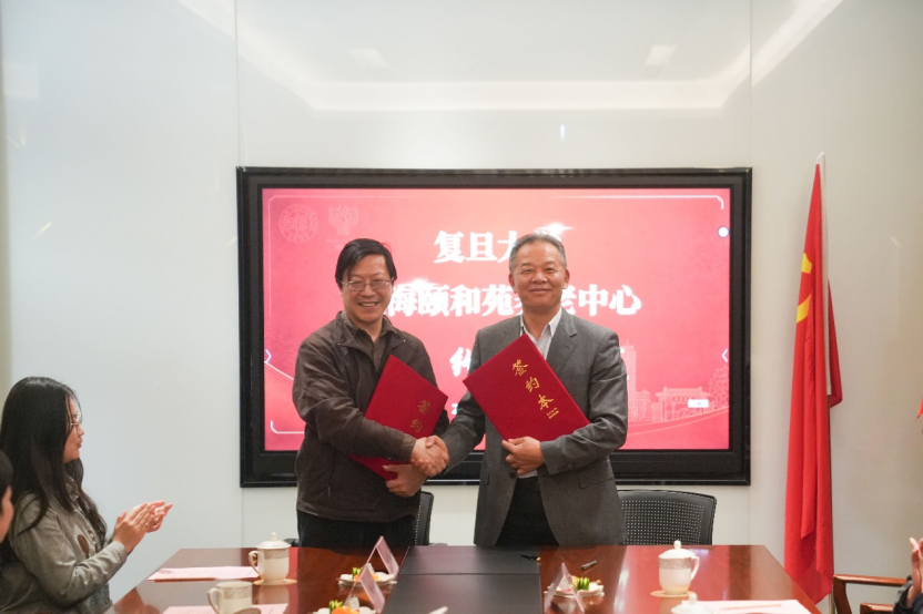 在热烈而温情的氛围中,徐珂和周保云共同签订《复旦大学书院教育实践基地合作共建协议》。
