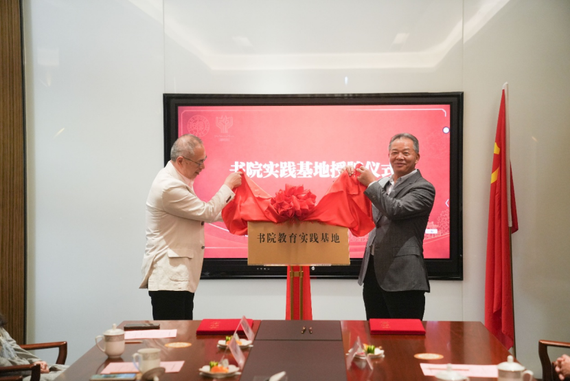 高国希向周保云授予“复旦大学书院教育实践基地”铭牌,标志着双方合作共建的书院教育实践基地正式设立。该基地将进一步拓展书院实践育人空间,为学生深入社会、服务长者、参与文化养老实践提供重要平台。